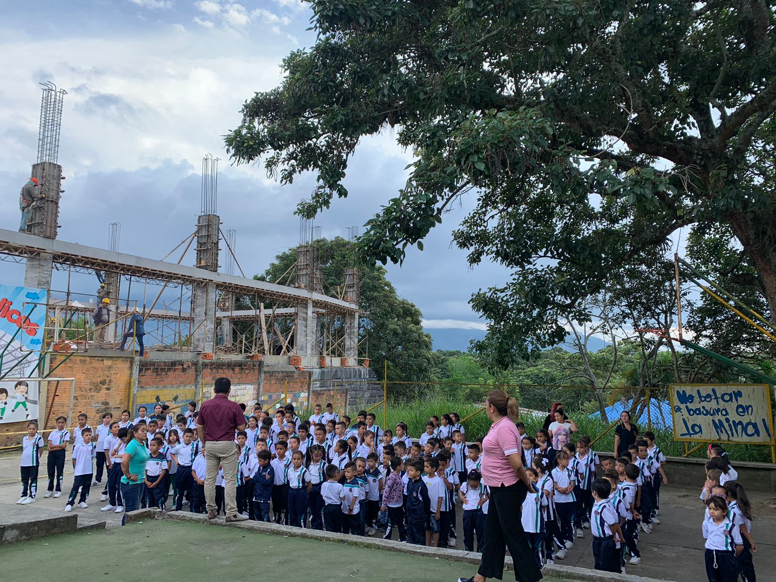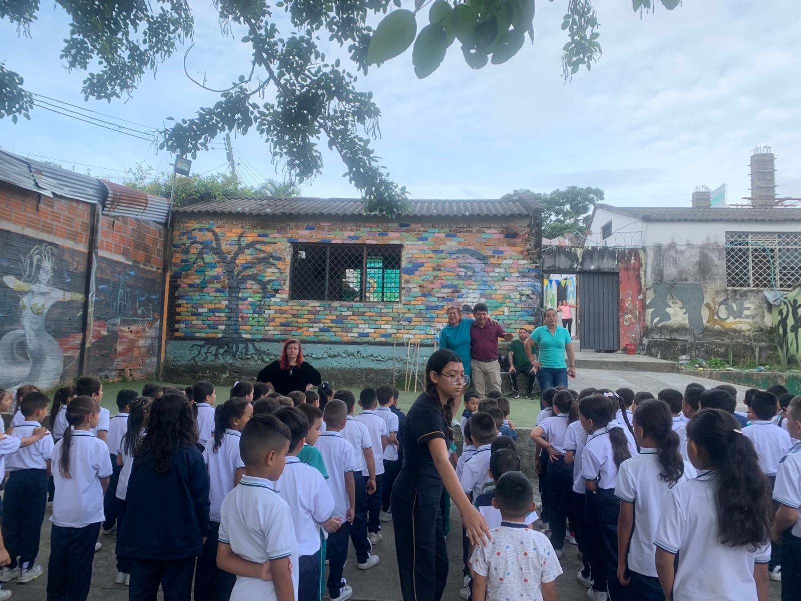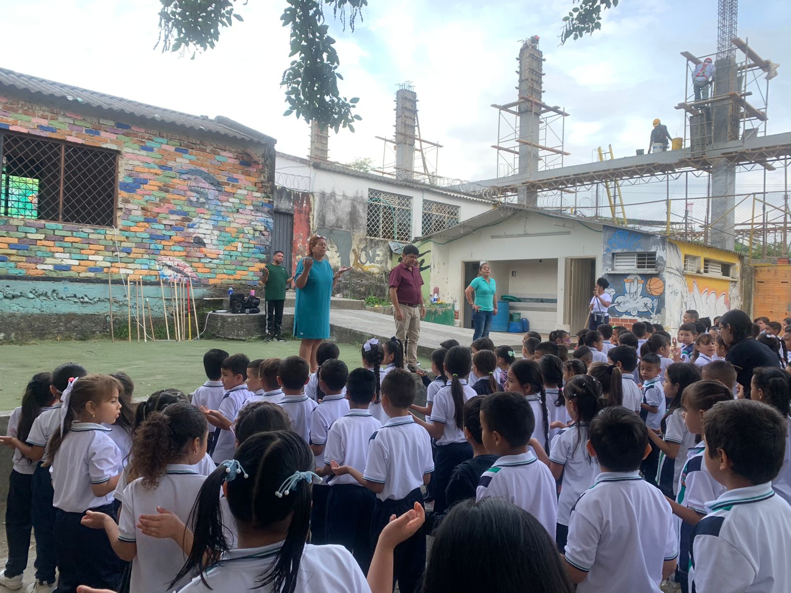 Foto 3. Saludo de bienvenida por la docente Consuelo Hernández y docentes de las