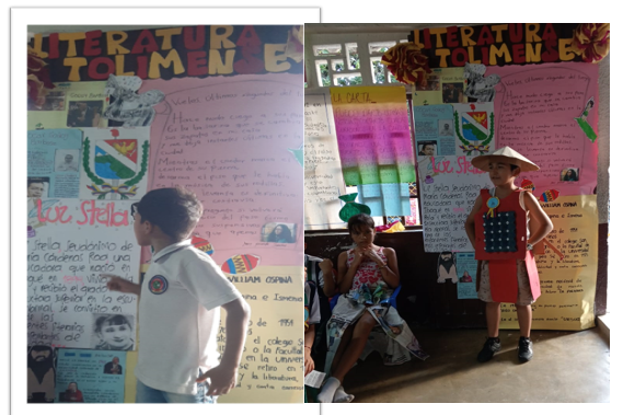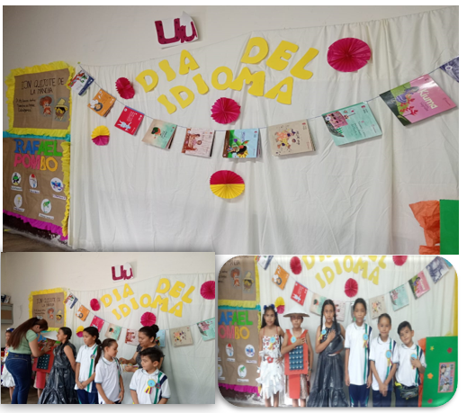 El día 23 de Abril del 2024 se llevó a cabo la conmemoración dia del idioma español, en el cual se mencionan grandes escritores como: el español Miguel de Cervantes Saavedra con su obra " El quijote de la mancha", relato a cargo de la docente Luisa Fernanda, escritores colombianos como: Gabriel García Márquez con sus obras reconocidas como "Cien años de soledad", "El coronel no tiene quien le escriba" y crónica de una muerte anunciada, Rafaél Pombo escritor de cuentos como:"Rin rin renacuajo"," La pobre viejecita", "Mirringa Mirronga" entre otros, relato y exposición a cargo de la docente Marlen Pinzón y se resaltó el rincón literario de escritores Tolimenses como: William Ospina, María Cardenas Roa conocida con el seudónimo luz Stella, Oscar Godoy Barbosa y Jorge Eliecer López, exposición realizada por estudiantes de los grados 2° y 4° de la jornada tarde, Por último se invitó a los niños a usar estos espacios de lectura en el tiempo del descanso y en la hora de plan lector.
